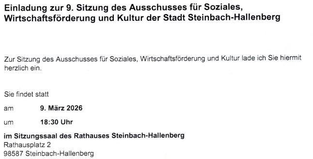9. Sitzung des Sozialausschuss der Stadt Steinbach-Hallenberg